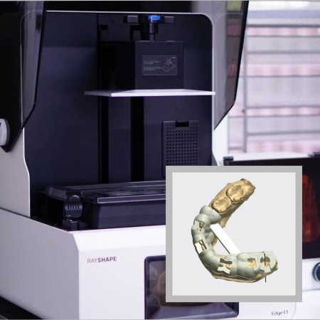 หลังจากออกแบบ Digital Guide สำเร็จ เราลงทุนการผลิตโดยใช้เทคโนโลยี 3D Printing ผลิตชิ้นงาน Digital Guide เพื่อเพิ่มความแม่นยำและรวดเร็วในการฝังรากเทียม